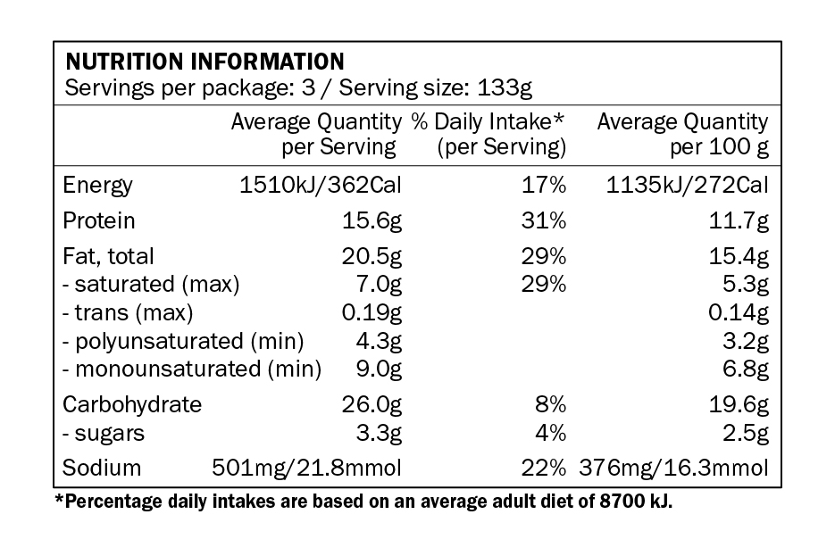 Plant based mince Beyond Meat 48.5% from E.U [water, pea protein 16%, rapeseed oil, coconut oil, rice protein, flavoring, cocoa butter, dried yeast, stabiliser (methylcellulose), potato starch, apple extract, salt, maize vinegar, concentrated lemon juice, emulsifier (lecithin, sunflower), color (beetroot red), maltodextrin, pomegranate extract], onion, wheat bulgur, vegetable mayo sauce [vegetable oils (sunflower oil, soybean oil) 56%, water, sugar, maize modified starch, salt, vinegar, artificial flavoring (smoke flavor, mustard emulsion), stabilizer (xanthan gum), color (paprika extract,b-carotene), antioxidant (calcium disodium EDTA)], water, salt, black pepper, red pepper, mint, garlic powder.