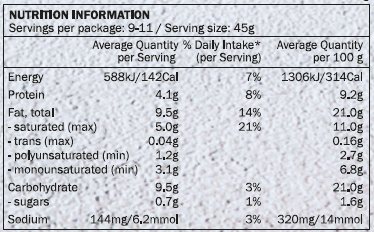 Wheat flour from E.U., vegetable margarine [non-hydrogenated vegetable fats (palm, palm kernel), non-hydrogenated vegetable oils (cottonseed oil, sunflower oil, corn oil), water, emulsifiers (mono- and diglycerides of fatty acids), salt, acidity regulator (citric acid), color (b-carotene), flavoring], water, salt, sugar.
