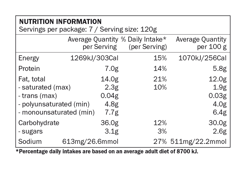 MAY CONTAIN: EGG, MILK, SESAME, TREE NUTS, PEANUTS, MUSTARD, SOY (LECITHIN), CELERY.